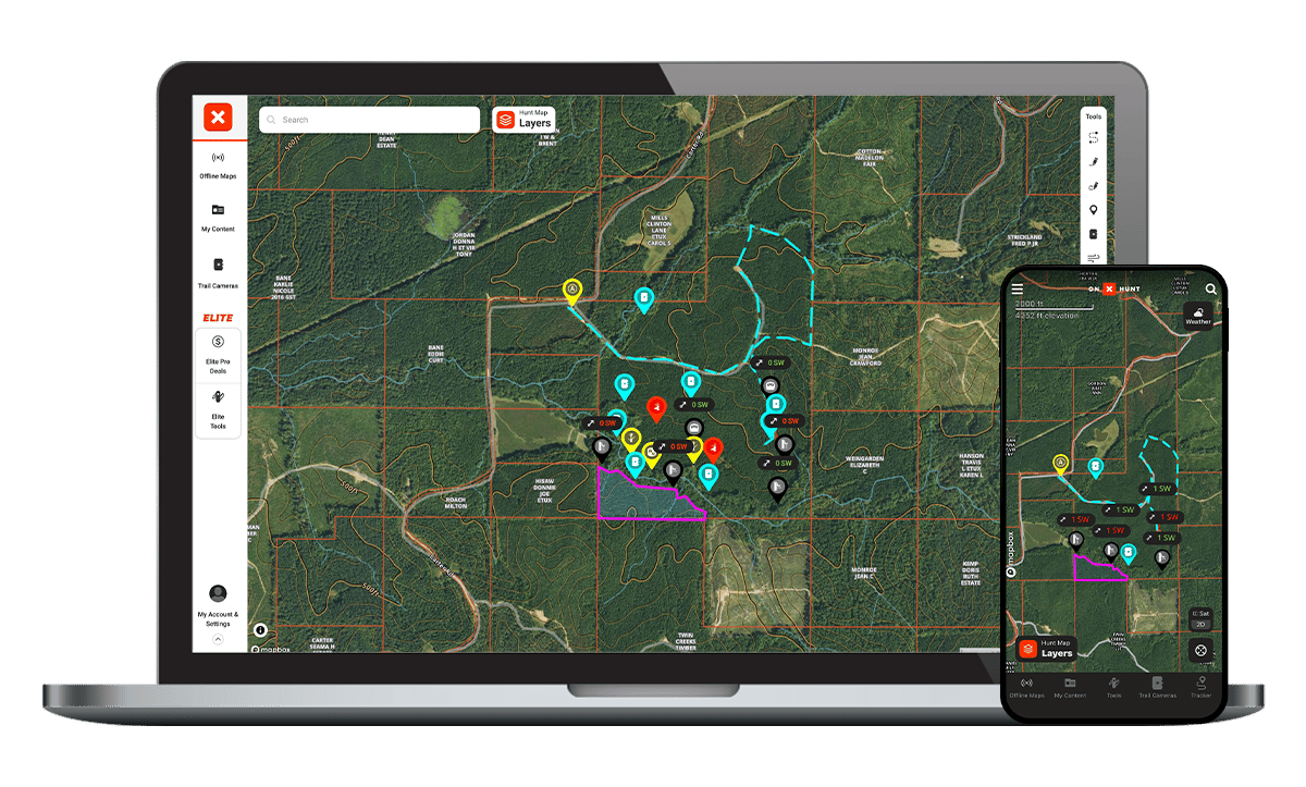 Before I walk a tract being sold on frontage, corners, or access, I like to have onX Hunt open. onX says the app shows private and public land boundaries, landowner names, acreage, offline maps, and waypoint tools, which is enough to make it useful before the first showing.